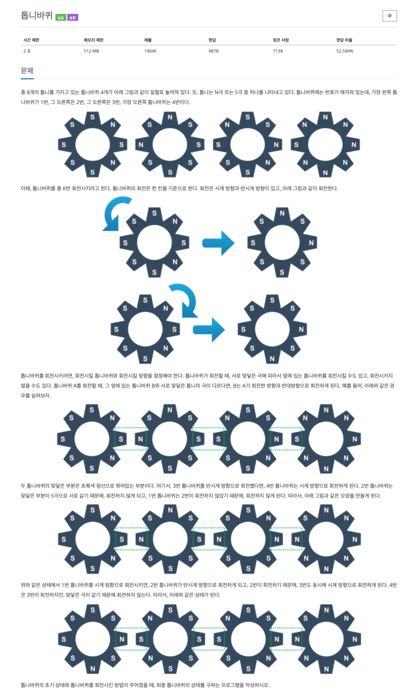 // 톱니바퀴의 사이를 체크해서 영향을 받아 회전하는지 안하는지 확인