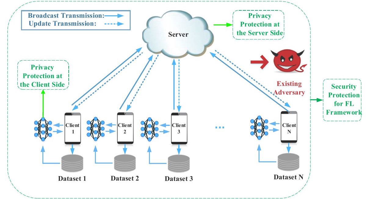 이 과정에서 나타날 수 있는 보안 이슈들은 다음과 같다. 첫번째로 model inversion 과 model extraction 이다. model inversion 은 이미 완성된 모델에서 모델 훈련에 쓰인 개인적 데이터를 유추하는 것이다. model extraction 은 이제 완성된 모델에 input, output 을 많은 쿼리를 통해 얻어서 이와 엇비슷한 모델을 만들어 버리고 그에 대한 parameter 값들을 유추하는 것이다. 따라서 이에 대한 해결법으로 모델에 저작권을 입력하는 model watermarking 이라던지, 모델을 아예 암호화해서 네트워크에 올리는 동형암호(homomorphic encryption) 등의 기법이 제시되고 있다.