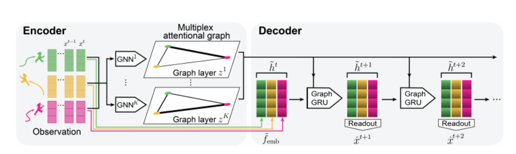 기존 multi-agent systems을 그래프 신경망 (GNNs)을 사용하여 상호 작용을 모델링하는 것이 제안되어 왔지만, 이러한 접근법들은 모든 에이전트가 동일한 방식으로 상호 작용한다고 가정했어서, 실제 사회적 multi-agent systems 에서 존재하는 여러 개의 상호 작용들을 명시적으로 다루지 않았다. 이는 곧 long-term prediction(장기 예측)에서의 성능 감소와 interpretability (해석력) 감소로 이어졌다고 한다.